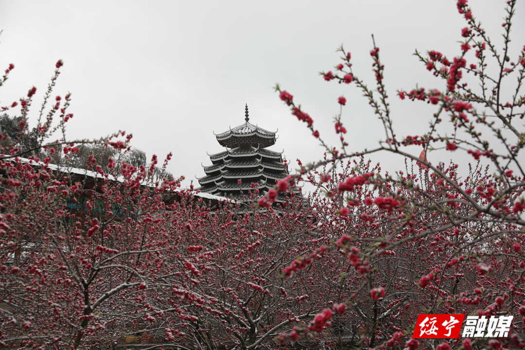 绥宁新闻网讯(记者 孙芳华 杨梅)2月25日,乐安苗族侗族乡大团侗寨的桃花迎着冰雪静静开放,为游客奉献了一份赏心悦目的春天大礼。