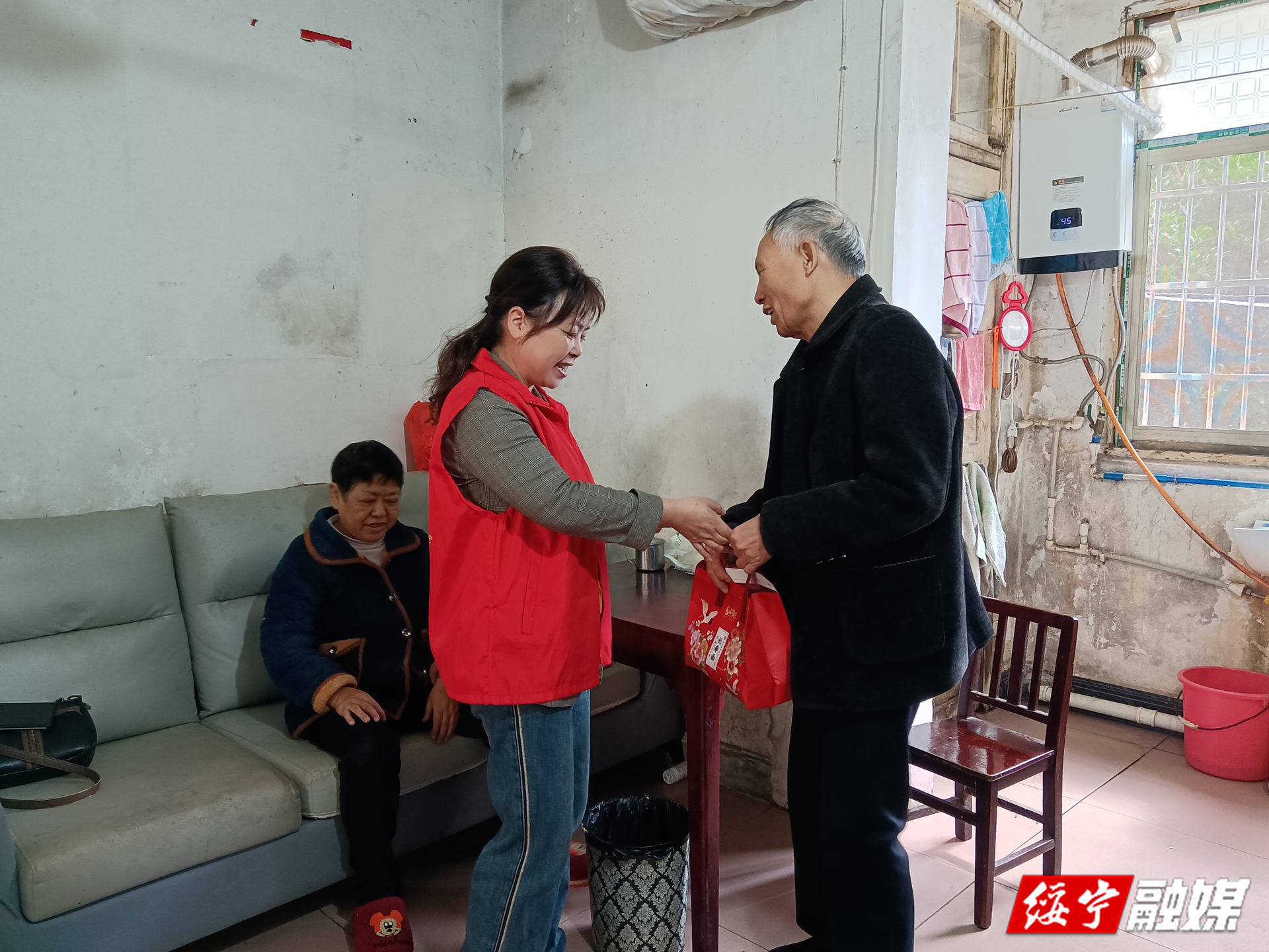 对行动不便的独居、失能老人,党员志愿者则带着米、长寿面等慰问品上门走访。并与他们拉家常,了解他们的身体状况及生活需求,让他们真切感受到社会大家庭的温暖。83岁的杨爷爷子女在外,党员小李不仅帮他打扫了房间,还教会他用手机视频通话,老人的脸上绽放着开心笑容。