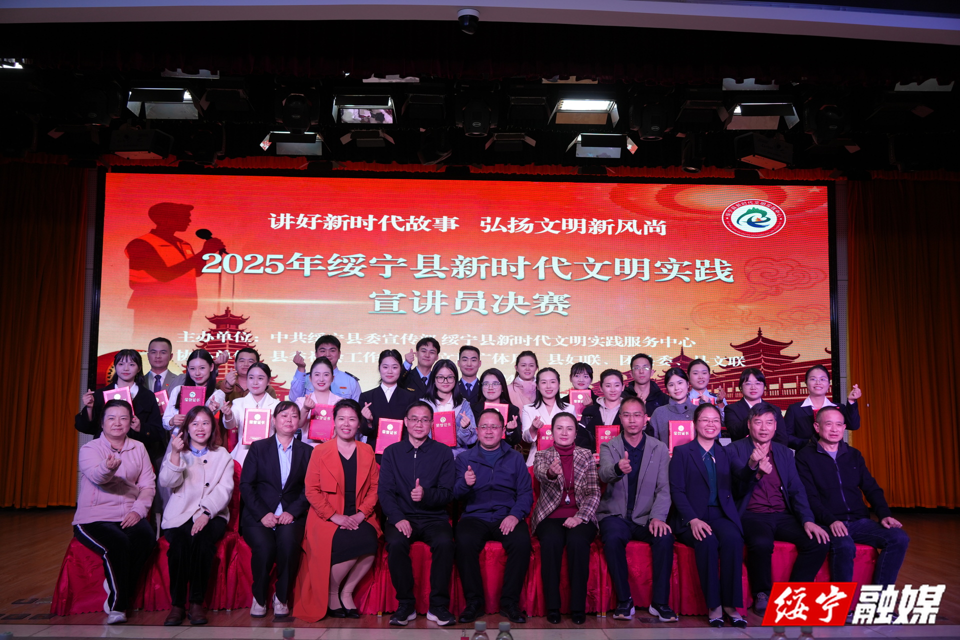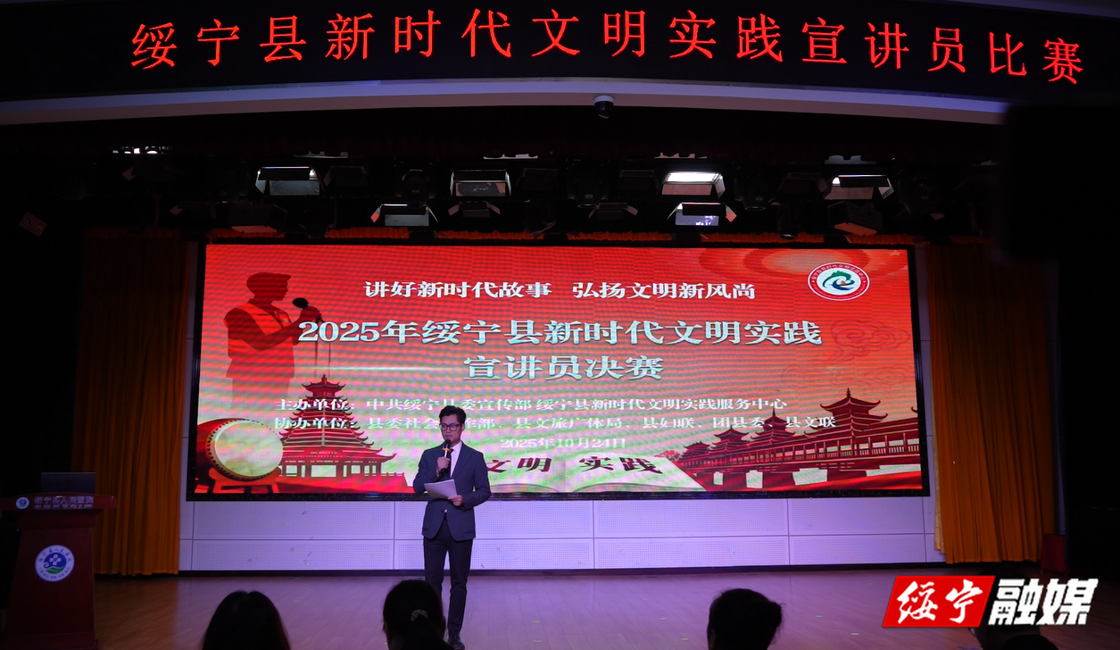 绥宁新闻网讯(记者 夏绵洁)10月24日,由中共绥宁县委宣传部主办的新时代文明实践宣讲员比赛决赛圆满落幕。32名优秀选手同台竞技,以动人的故事和昂扬的风貌,深情诠释新时代的深刻内涵,唱响文明新风的动人乐章。
