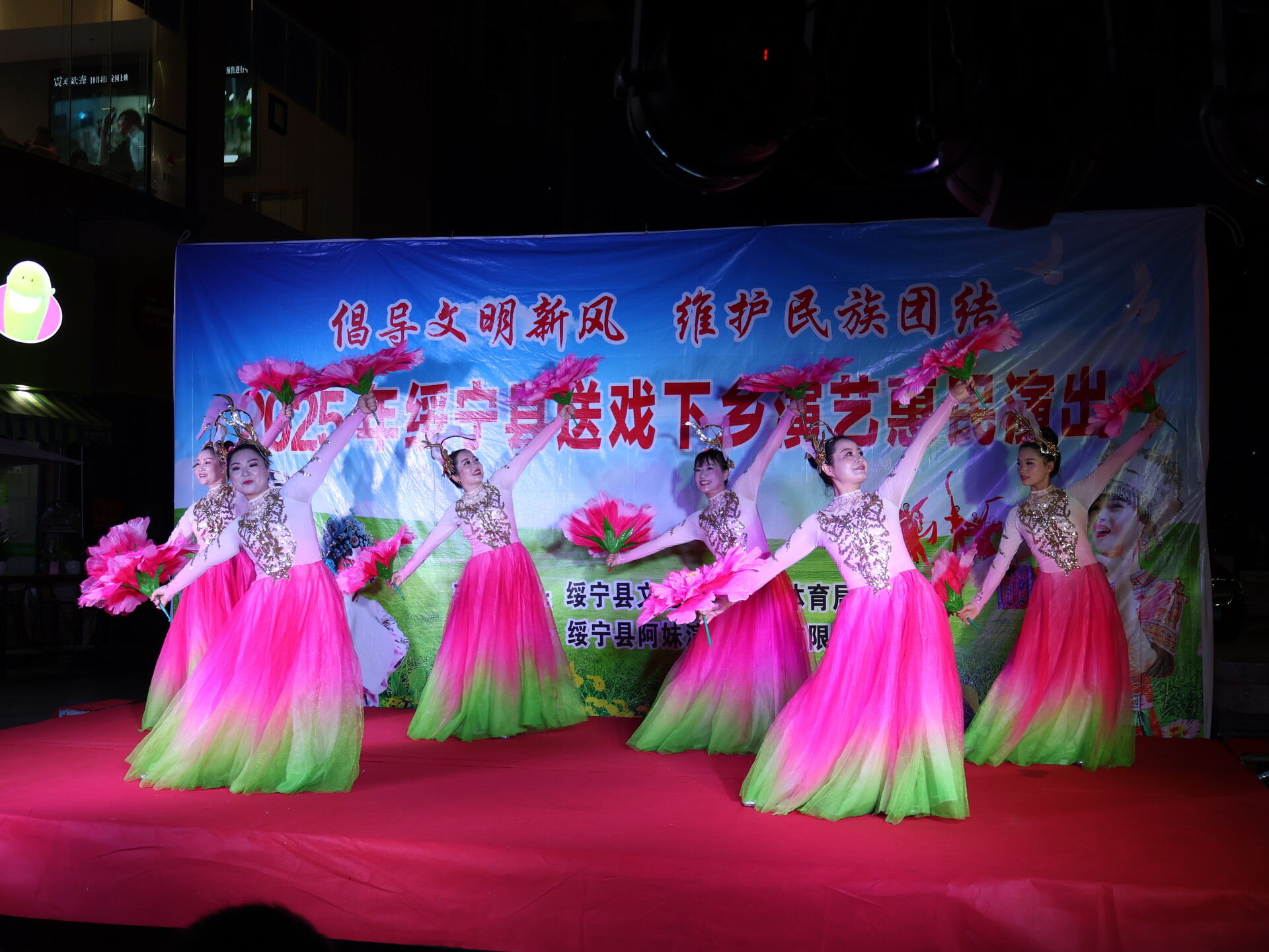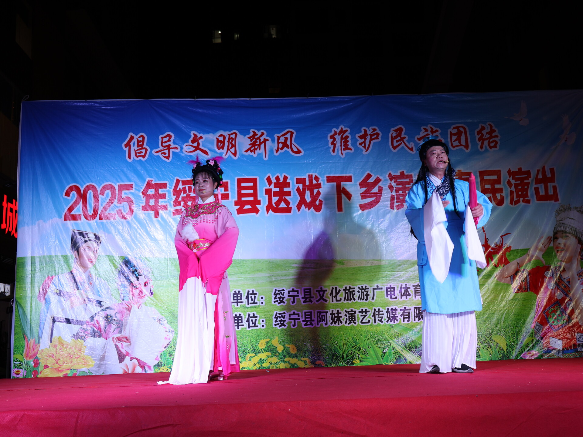 绥宁新闻网讯(记者 向海 通讯员 肖炜桦) 金秋十月,国庆、中秋双节同庆。10月1日晚,绥宁县“送戏下乡”演艺惠民活动在绿洲壹号文化广场正式开演,用一场接地气、有温度的文艺演出,为现场群众送上双节专属文化大礼,让大家在家门口沉浸式享受佳节氛围与文化魅力。