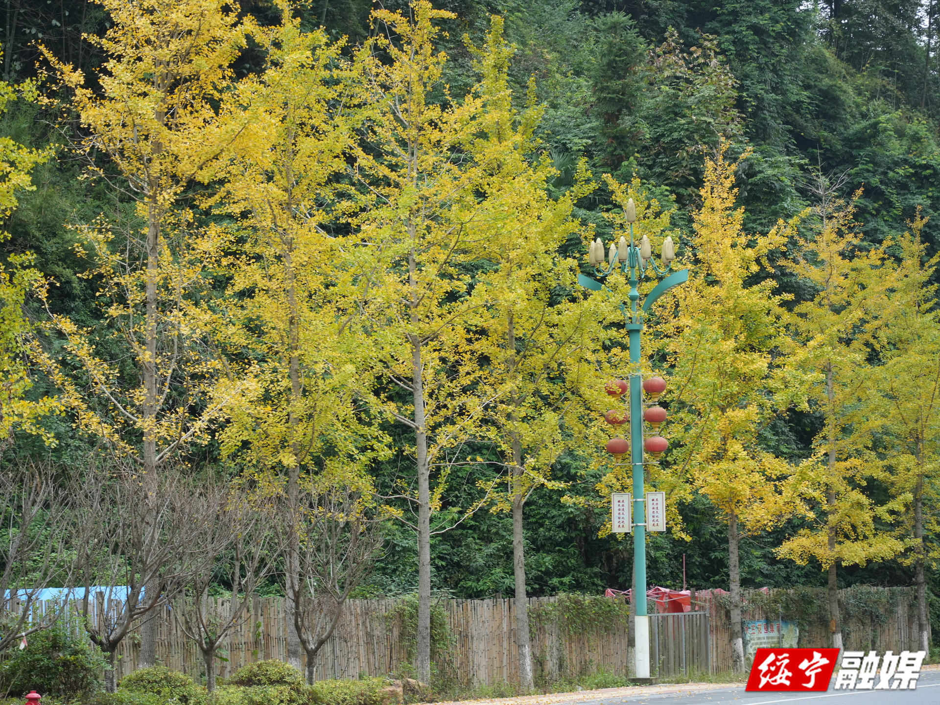 绥宁新闻网讯(记者 周玉玲 邓钊)近日,绥宁县城周边的银杏迎来最佳观赏期,道路两侧的银杏树褪去翠绿,换上“黄金铠甲”,金黄的叶片在阳光照耀下熠熠生辉,成为县城冬日里一道靓丽的生态风景线。